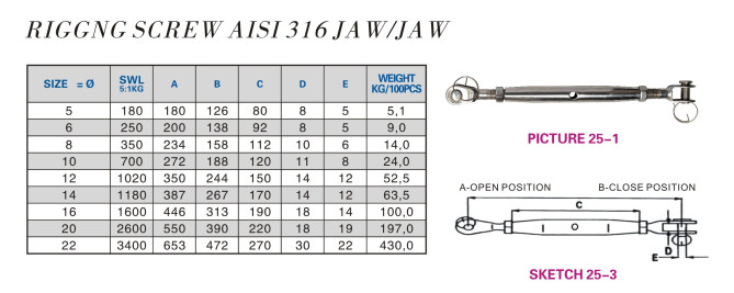 RIGING SCREW AISI316 JAW&JAW