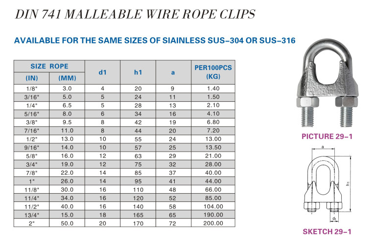 DIN741 MALLEABLE WIRE ROPE CLIPS