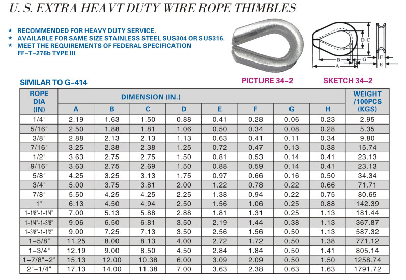 U.S EXTRA HEAVT DUTY WIRE ROPE THIMBLES